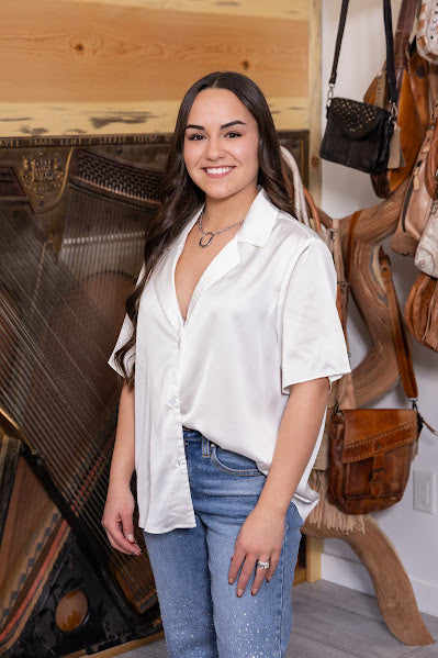 Satin Button Up Short Sleeve Blouse