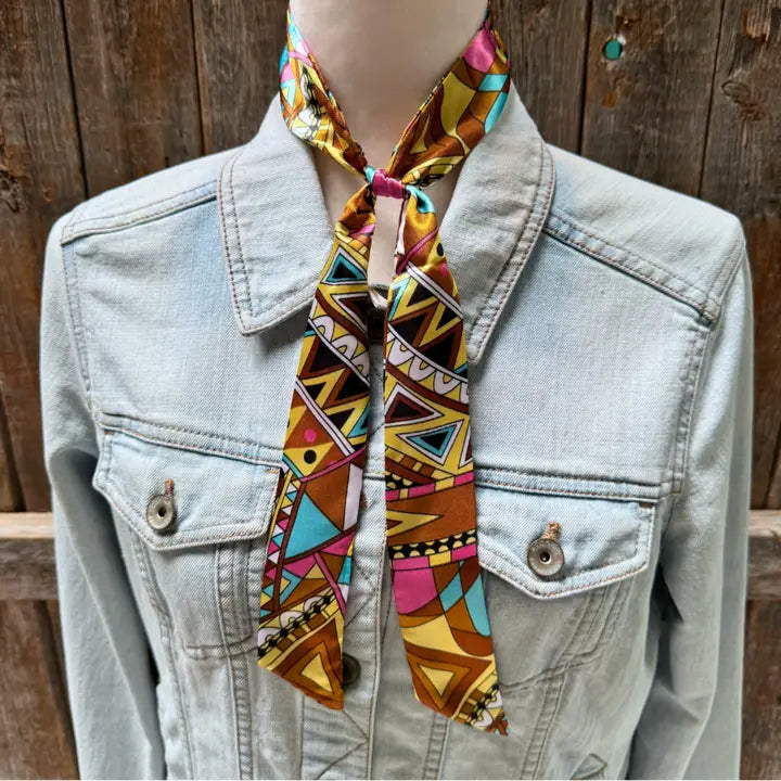 Western-Inspired Skinny Mini Scarf, brings a modern twist to the traditional wild rag.