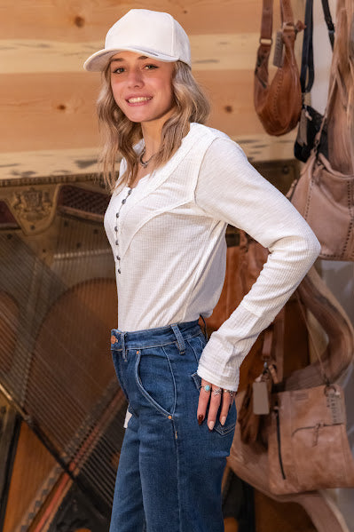 Snow Wash Two Tone Button Down Top