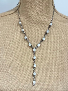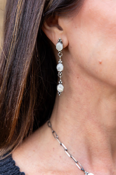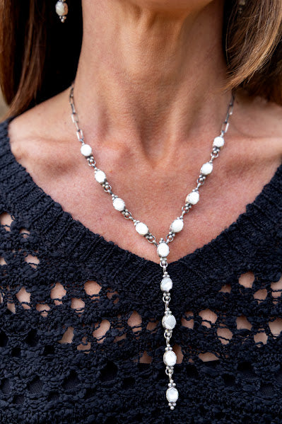 Mother of Pearl and sterling silver necklace and earrings set by Tricia Smith.