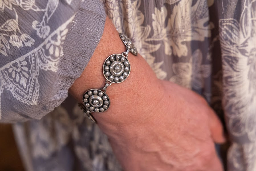 This sterling silver bracelet with the star link patterns is so unique! It's perfect for your casual outfits and getting dressed up! Don't forget to get the matching necklace with this one!