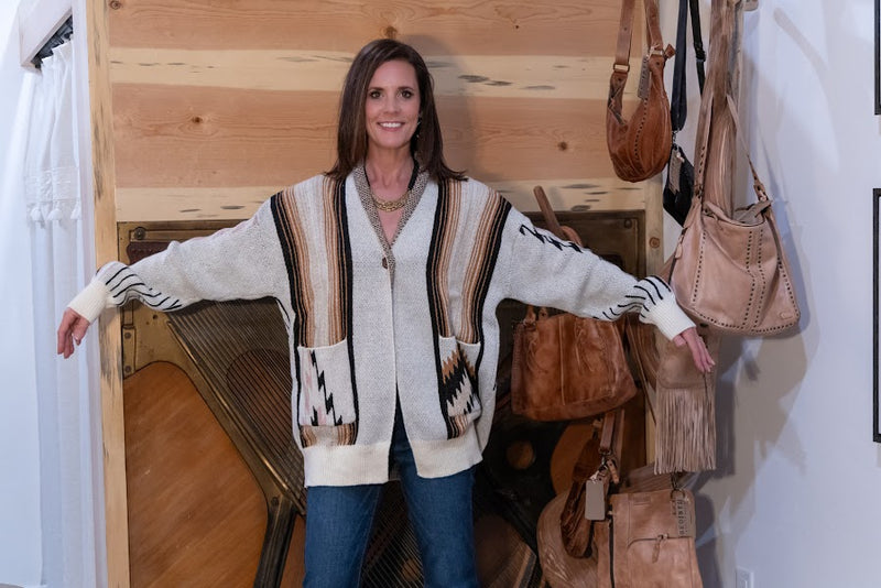 Make a statement with our Prints & Patterns Collection, a blend of bold designs, earthy Southwestern motifs, and playful textures that bring personality to every outfit. From boho florals and geometric Western prints to classic stripes and eye-catching patterns, these pieces add color, movement, and authenticity to your wardrobe.