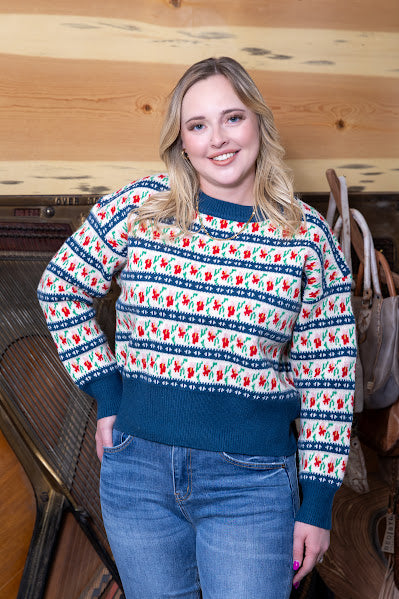 Western Floral Jacquard Knit Sweater