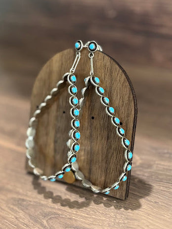 Zuni made turquoise and sterling post earrings featuring a teardrop shape and 50 turquoise stones by Marlon Quam.